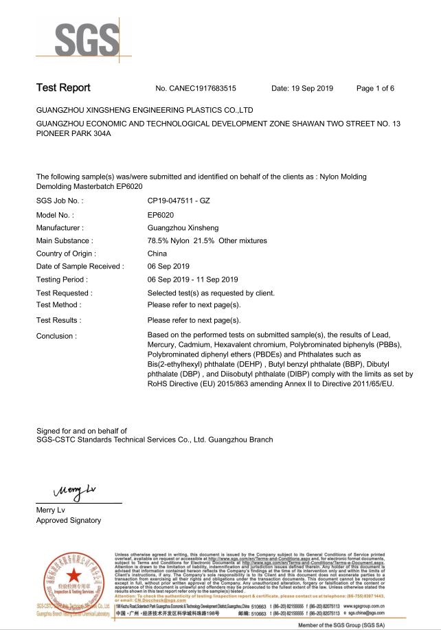 尼龙脱模母粒SGS报告