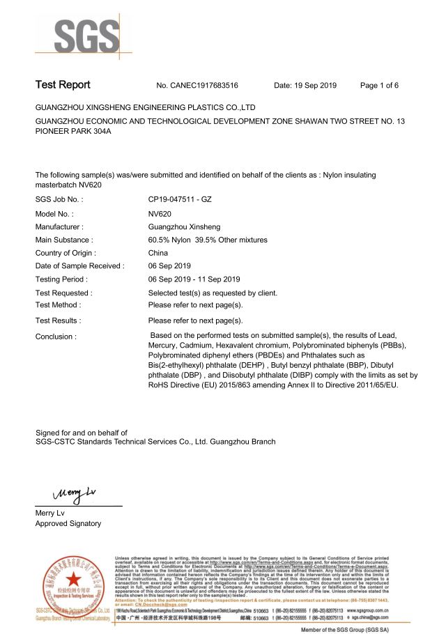 首页 >> 新闻资讯 >>行业动态 >> 尼龙高绝缘母粒SGS报告