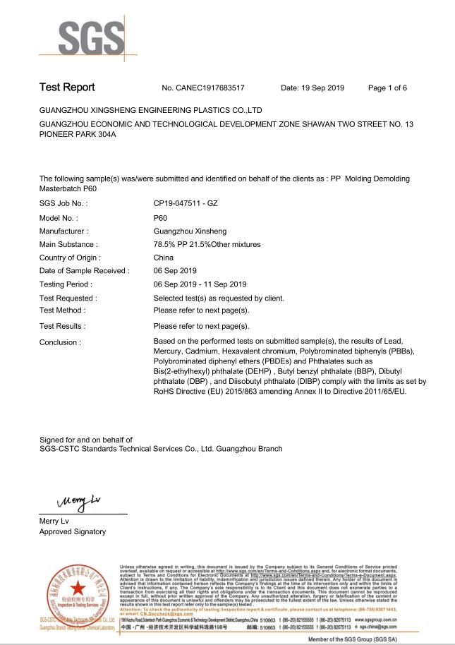 首页 >> 新闻资讯 >>行业动态 >> 塑料PP脱模母粒SGS报告